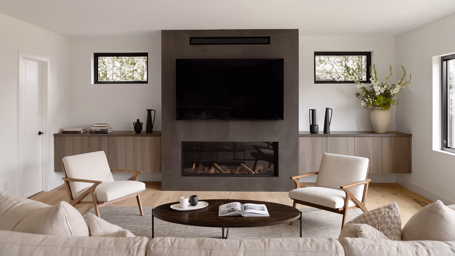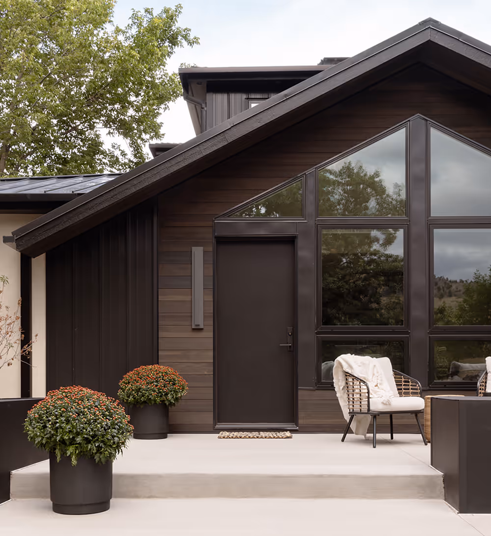 Cedar House was the stunning full interior and exterior transformation of a beautiful home in Boulder, Colorado. The client desired a modern industrial vibe which was achieved through black and white high contrast materiality included metal siding and white stucco. Wood accent siding was installed to warm up the aesthetic. The existing living room underwent a stunning transformation through the insertion of vaulted windows which matched the interior vaulted ceiling. Ensuring the homes residents were able to get the best views of the nearby Rocky Mountains. The interior of the home also underwent an incredible remodel, offering high quality finishes in idyllic tones to create a perfect comfortable modern atmosphere.