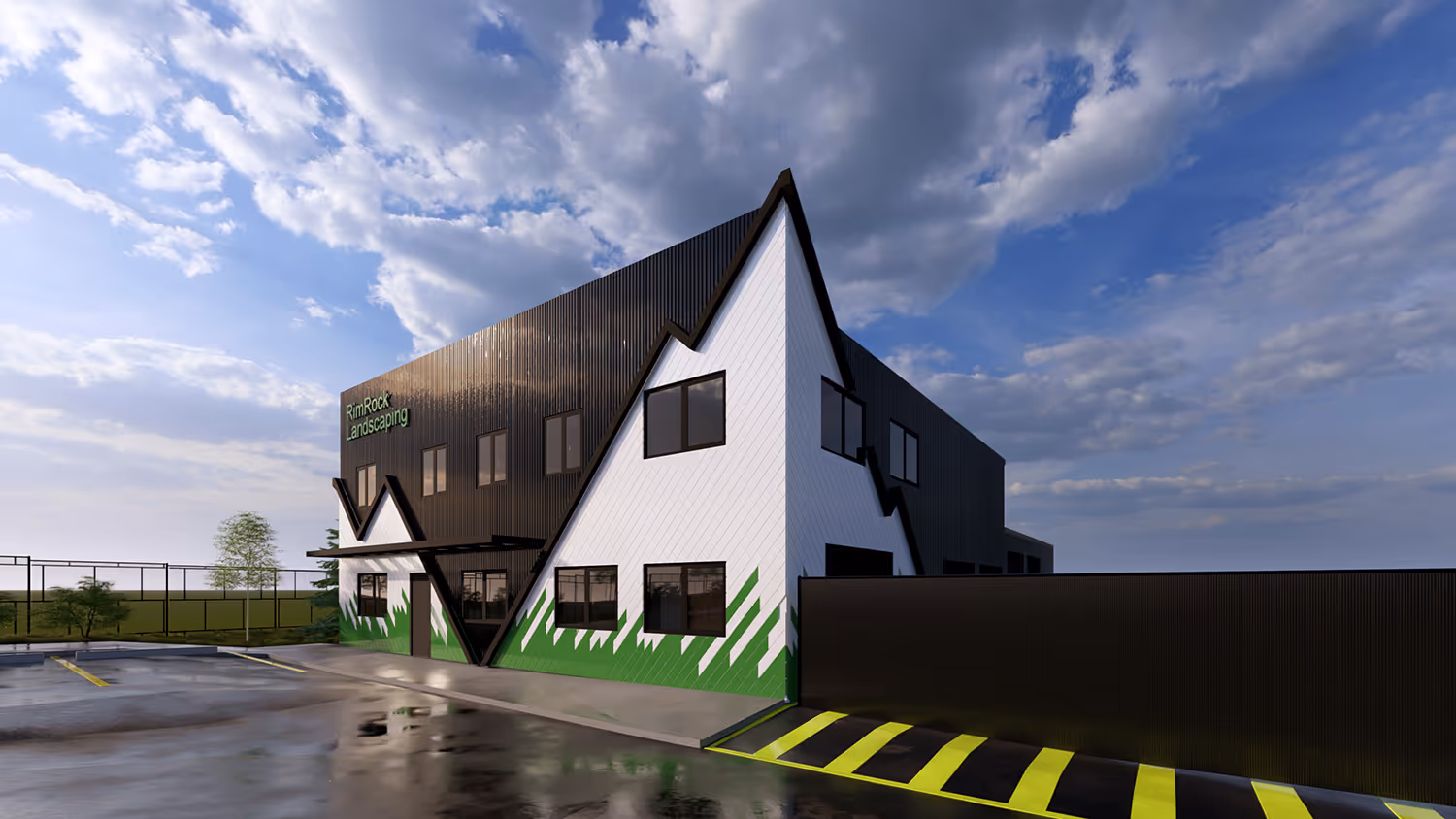 RimRock Landscaping is a local landscaping and yard services company proudly serving the calgary area. This building will serve as the companies new headquarters for years to come. The design of the building is focused on efficiency and functionality. Meanwhile the exterior aesthetic was designed to ensure the building standsout and speaks to the marketing and mantra of RimRock Landscaping.
