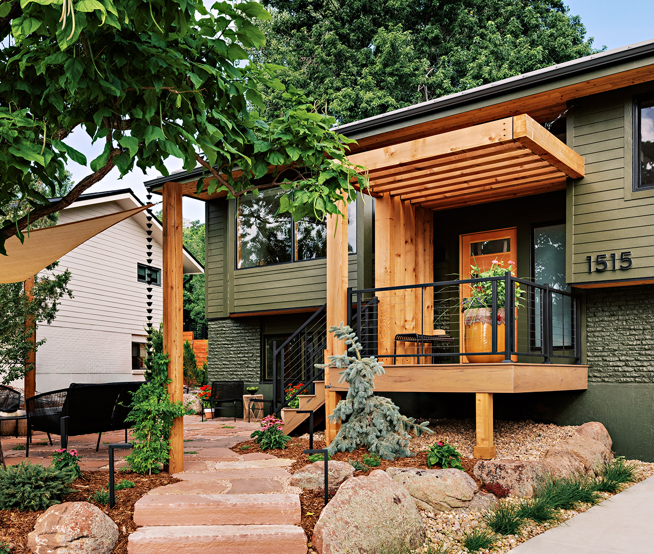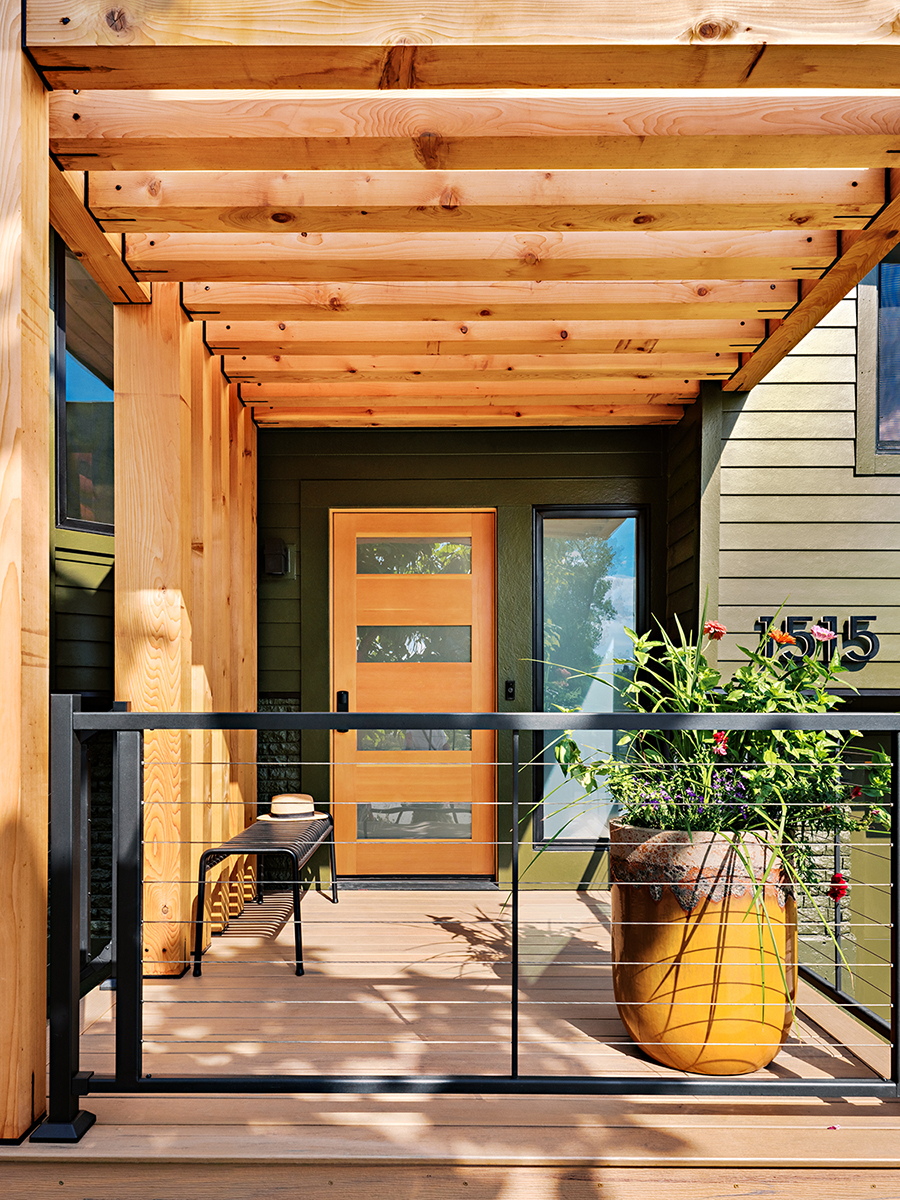 Veile Park House was a relatively typical home located on a street which had several homes that looked just like it. The client desired to remodel the home to set it apart from the neighbors. This was achieved through a refined exterior color palette and creating a unique entrance feature with heavy timbers. The entrance pergola stops the neighbors in their tracks in admiration, as they also take in additional details such as the rain chains and updated landscape design. Now the home is a standout home of the neighborhood.